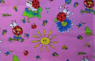 Полотенце вафельное большое "Божья коровка" розовое