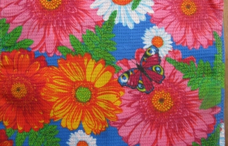 Полотенце вафельное маленькое "Цветы с бабочкой"